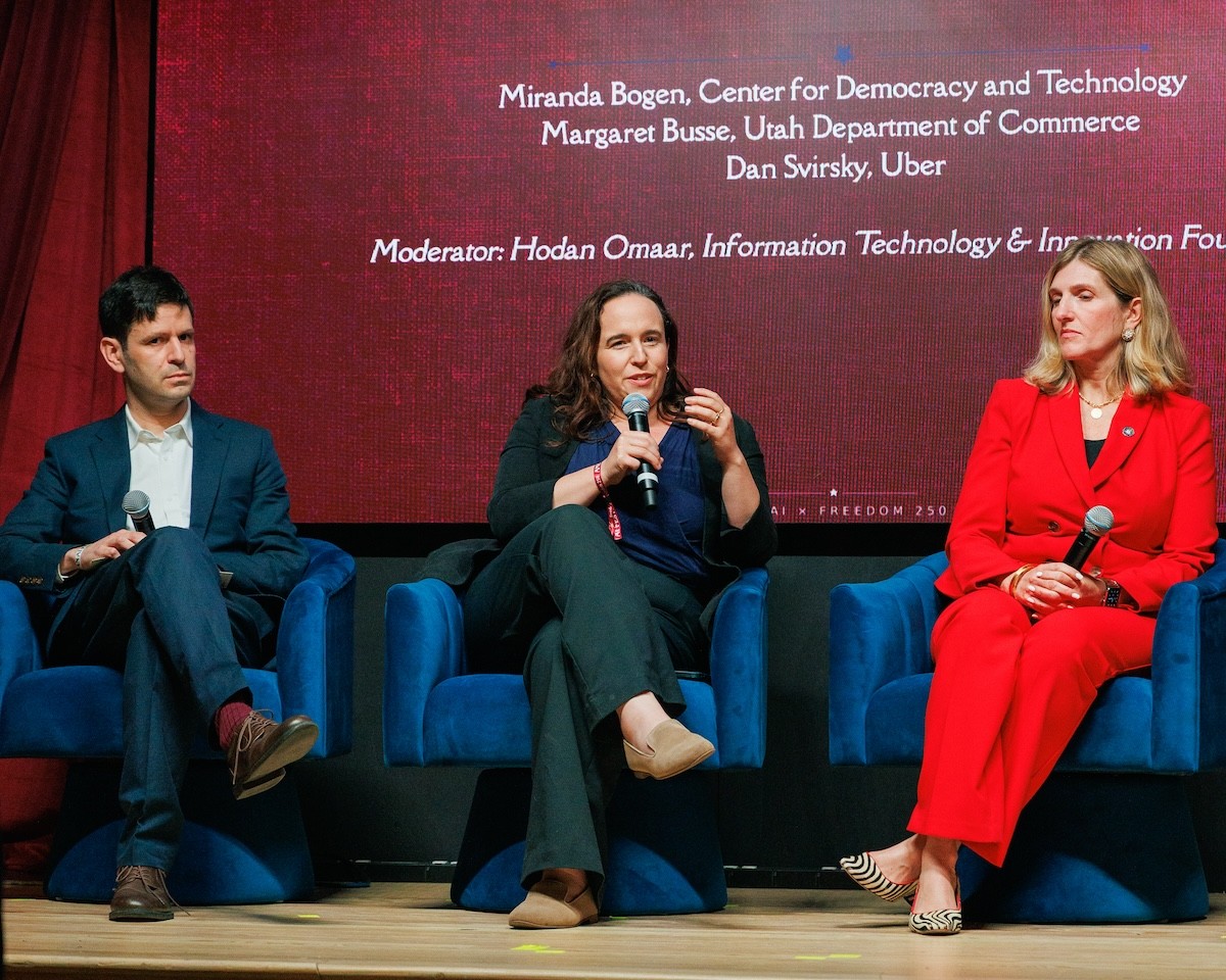 The afternoon governance panel was grounded in examples. Utah's regulatory sandbox has already allowed AI to renew prescriptions and expand the scope of what dental hygienists can do with AI tools. Uber published its first algorithmic transparency report. The panel, moderated by Hodan Omaar, addressed what remains unresolved: who pays for third-party evaluations, how detailed transparency needs to be to be useful, and where federal standards are necessary versus where states need room to experiment.
